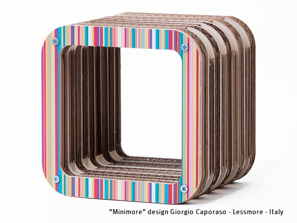 Minimore completes the design projet of the More system, giving you a further take on high combinability. Using the same simplicity of More Light, and easily fitting together with it, Minimore exploits the space dividing it into smaller and smaller modules. A place where even objects of a modest size can find a home. A new space to invent, ideal for tidying up, organizing and arranging our personal belongings.