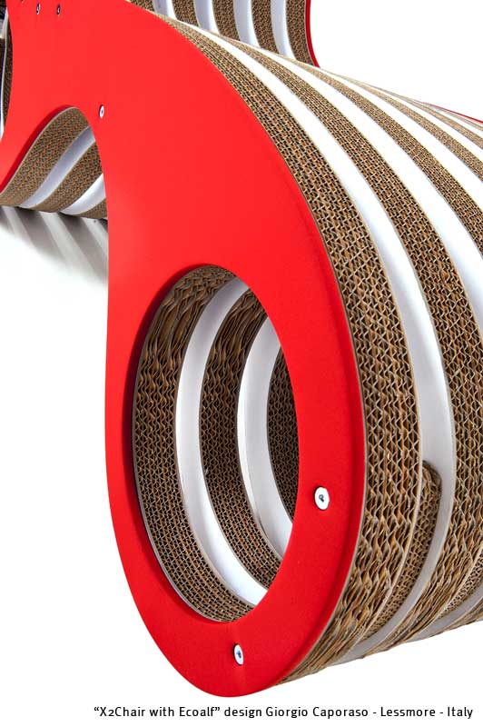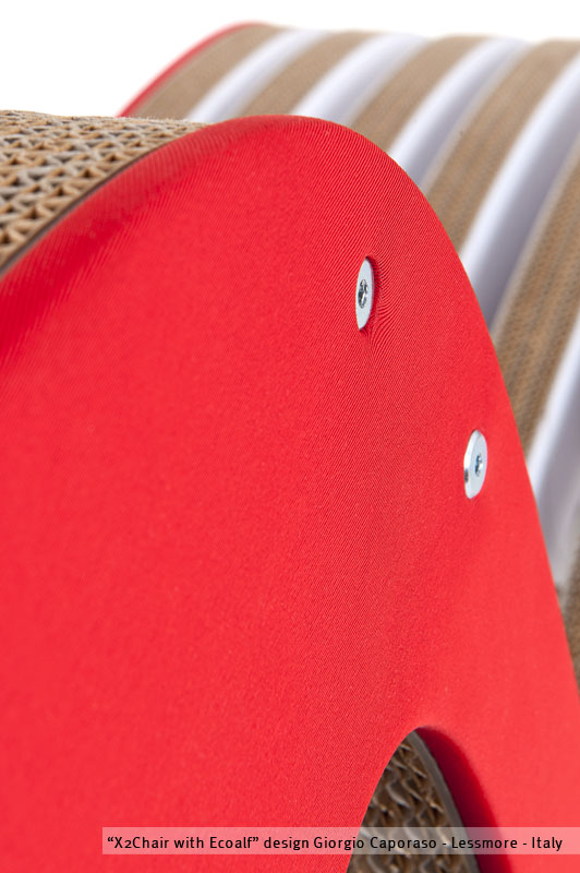 A special version of X2Chair is born from the collaboration between Lessmore and Ecoalf, the Spanish company that transforms the Mediterranean Sea's waste into fashion accessories and high quality fabrics. The side panels of X2chair are covered with Ecoalf fabrics.