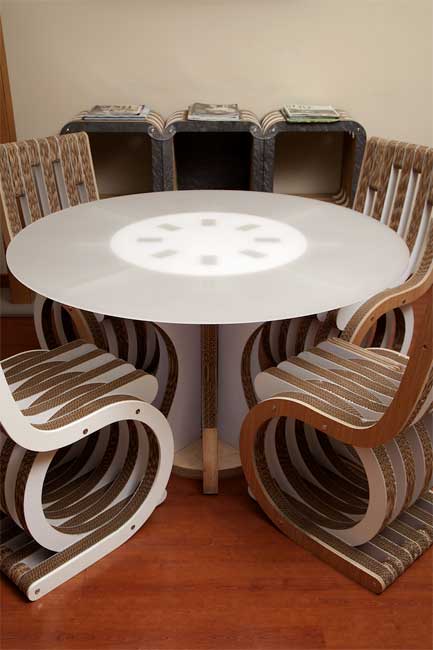 Il BiologicBar & Restaurant dell'Eco-Hotel La Residenza di Milano viene rinnovato con le sedie, i tavoli, librerie ed espositori, chaiselongue e portavasi in cartone della EcoDesign Collection di Lessmore.
