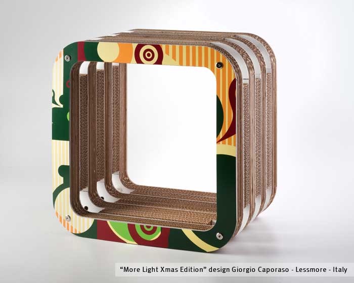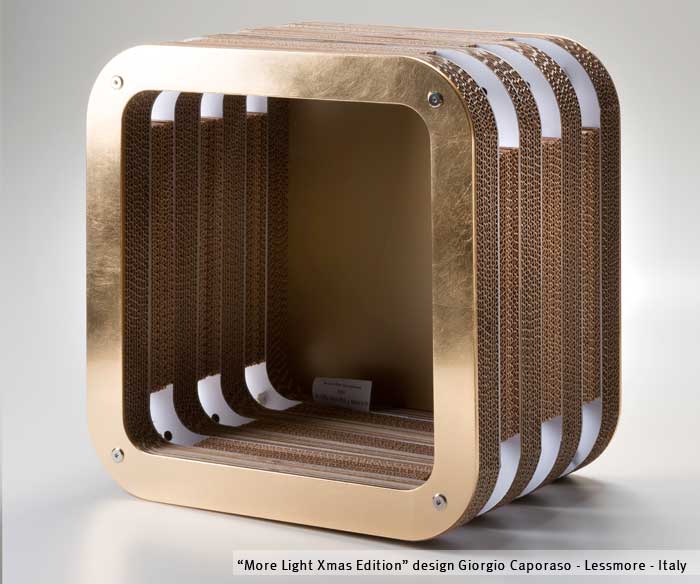 In versione luminosa, realizzato con cartone, multistrato di betulla FSC e luci a LED.